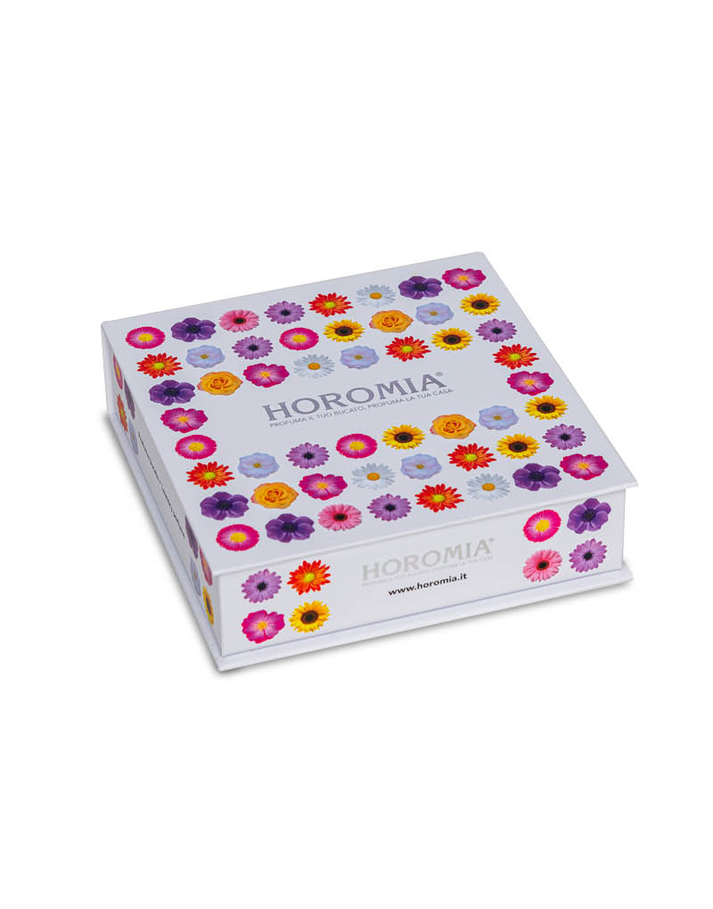 HOROKIT MONODOSE custodisce 18 pratici mini formati di Profuma Bucato Horomia. Fresche, speziate, avvolgenti, fiorite, le fragranze Horomia sono diverse per soddisfare qualsiasi desiderio.