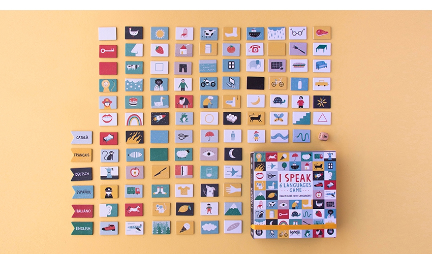 Per prima cosa mescoleremo le fiches nel sacchetto di cotone e posizioneremo i sei pezzi a forma di bandiera delle lingue al centro del tavolo. Le regole sono molto semplici: il giocatore A tira i dadi e il giocatore B (seduto alla sua sinistra) estrae una pedina dal sacchetto. Il giocatore A deve pronunciare correttamente il nome dell’immagine sulla fiche nella lingua indicata sui dadi. Se conosce la risposta, vince la fiche. Se non la conosce, la pedina verrà posizionata sul tavolo accanto alla bandiera corrispondente. Prima di posizionare la fiche sul tavolo, tutti i giocatori possono guardare la risposta sul retro e memorizzarla. Ogni giocatore, al suo turno, può anche vincere le fiches dal tavolo se ricorda la risposta correttamente. Il primo giocatore a ottenere dieci pedine vincerà!