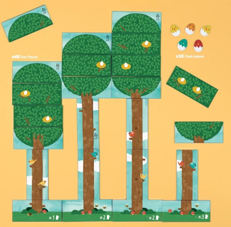 Costruisci una foresta pezzo dopo pezzo mentre prendi decisioni e fai un pò di calcolo mentale. Radici, tronchi e chiome formano alberi pieni di nidi dove potranno nascere i tuoi pulcini. Collabora, scegli bene ogni mossa e fai nascere il maggior numero di pulcini per vincere la partita!