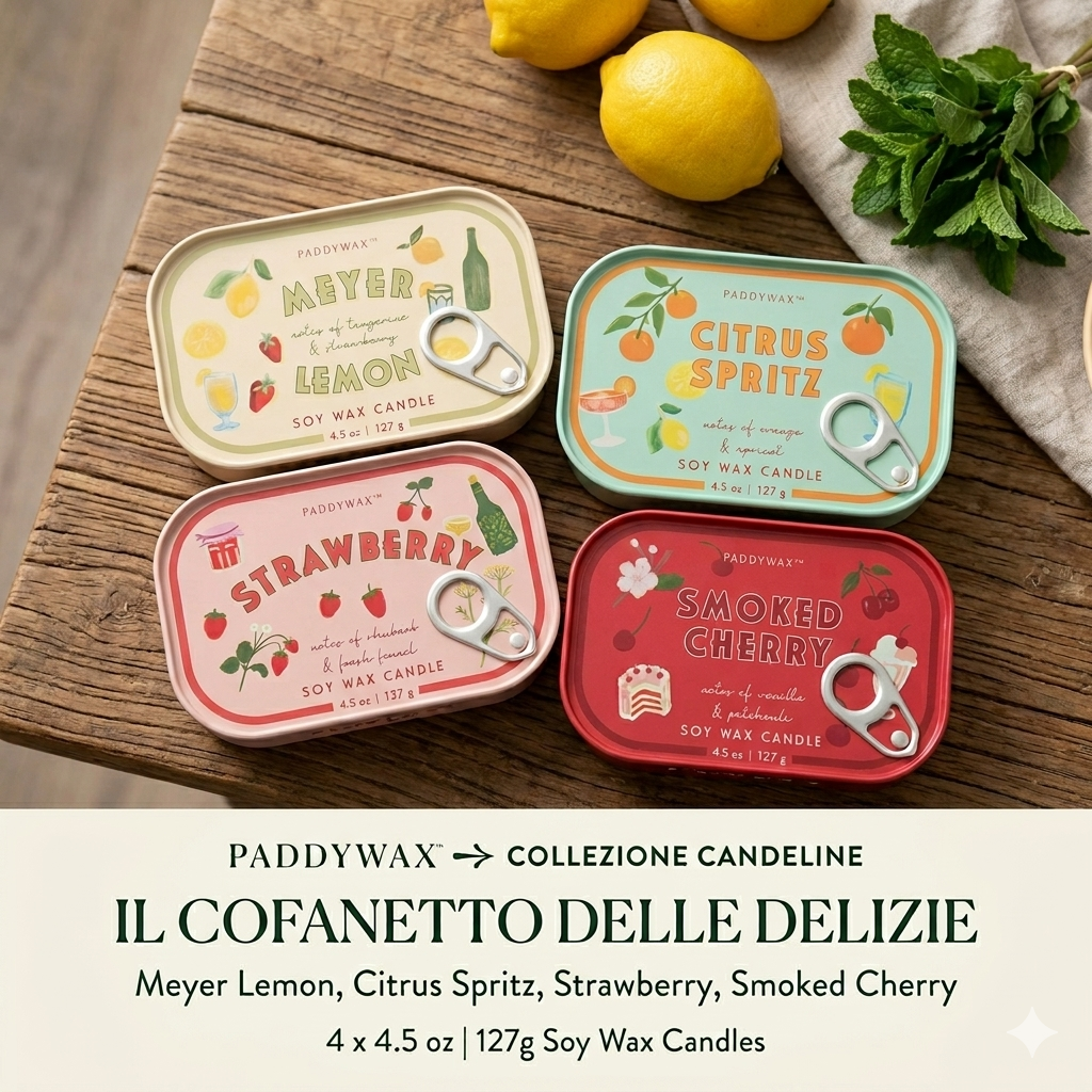 Dimentica i soliti contenitori: la nuova collezione di candele firmata Paddywax trasforma l’estetica delle iconiche conserve alimentari d’altri tempi in un complemento d’arredo moderno e divertente. Racchiuse in eleganti scatole di latta con apertura a strappo, queste candele non sono solo un piacere per l’olfatto, ma un vero e proprio oggetto di design da collezionare.