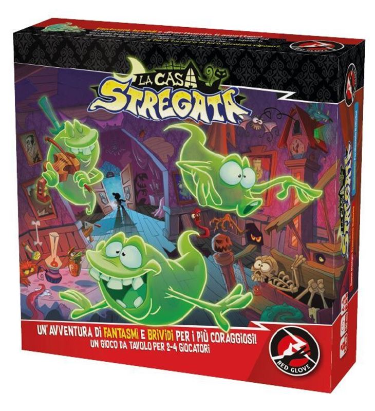 Contenuto: 1 tessera entrata, 1 tessera stanza fantasma, 2 tessere corridoio, 60 tessere stanze, 4 tessere personaggio, 28 tessere torcia, 4 piedistalli di plastica, 1 dado in legno, regolamento.