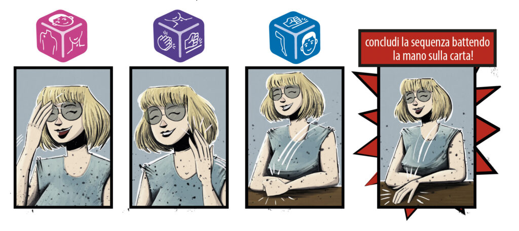 Lanciate il primo dado e cerca di essere il primo a mettere la mano sulla carta, ma solo dopo aver eseguito l’azione indicata dal dado.